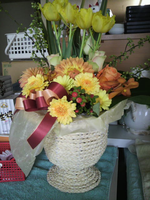 職場には、前に行ってた飲み屋のママさんから、花が!